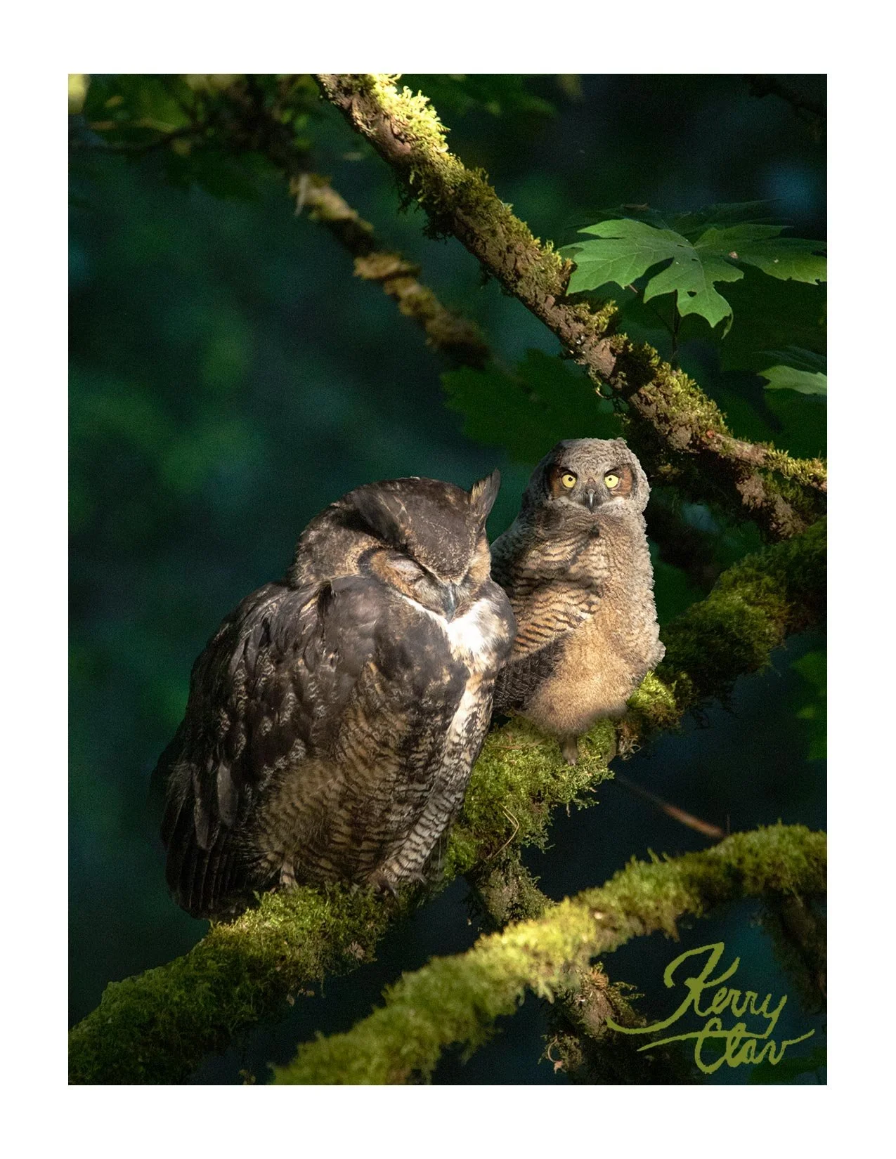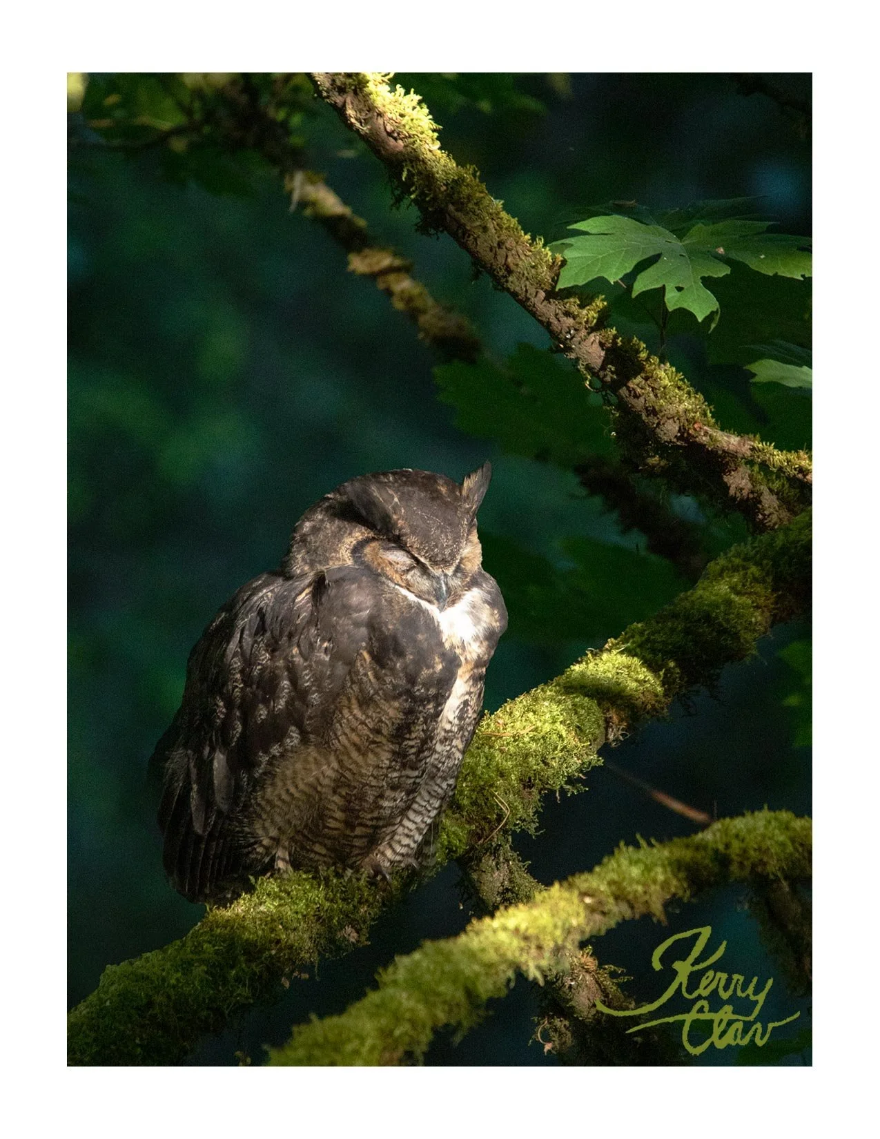 Great Horned Owl Sleeps in the Big Leaf Maple